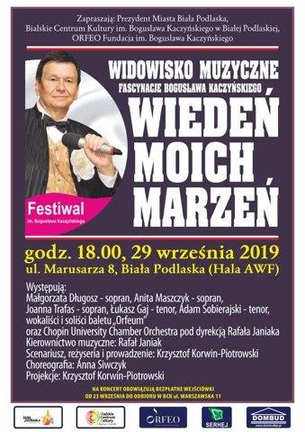 Finałem Dni Patrona Białej Podlaskiej i Festiwalu im. Bogusława Kaczyńskiego będzie wspaniałe widowisko prezentujące uwielbianą przez wielkiego bialczanina muzykę wideńskich mistrzów. Inicjatorami wydarzenia są prezydent Miasta Biała Podlaska Michał Litwiniuk oraz Fundacja Orfeo, założona przez Bogusława Kaczyńskiego i jego przyjaciół. Koncert poprowadzi dyrektor artystyczny fundacji, Krzysztof Korwin-Piotrowski.