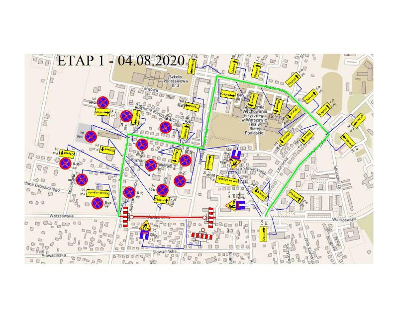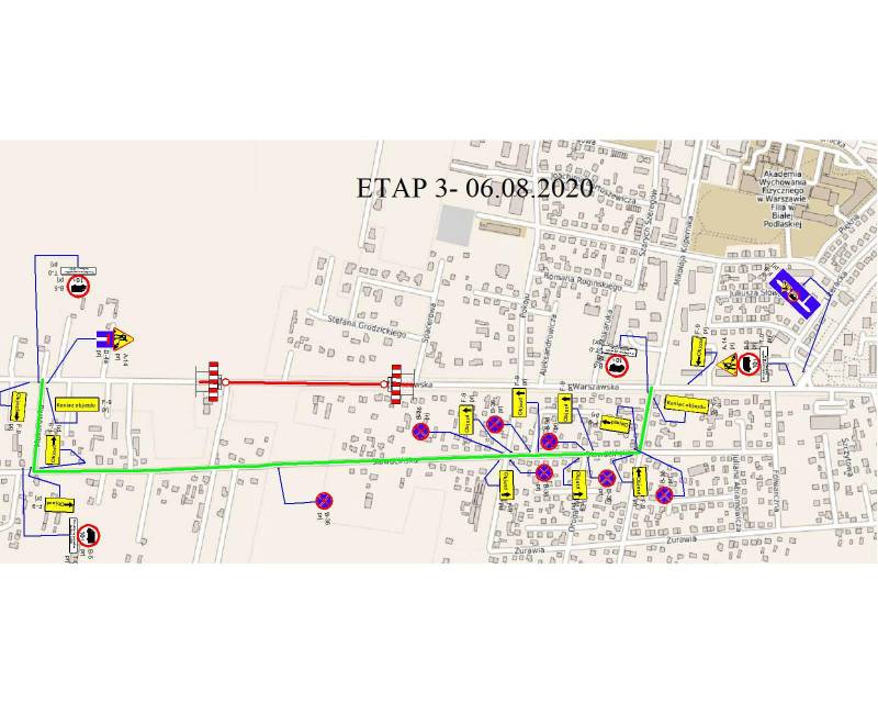 - 6 sierpnia - zamknięcie ul. Warszawskiej na odcinku od ul. Spacerowej.