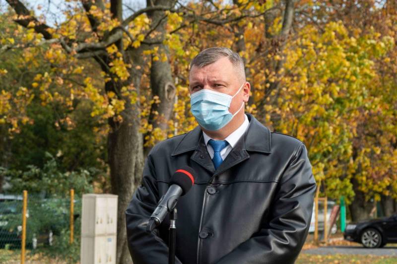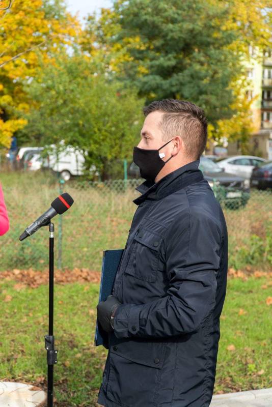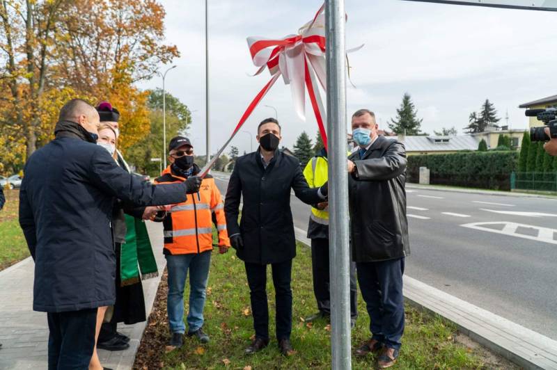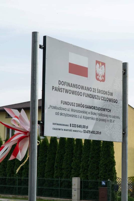 Prezydent Michał Litwiniuk wraz z panem wicewojewodą Robertem Gmitruczukiem, ks. dziekanem Marianem Danilukiem, prezesami realizujących inwestycję firm: Tre-Drom - panem Wiesławem Harasimiukiem i Budomex - panem Eugeniuszem Izdebskim oraz zastępcą prezydenta - panem Maciejem Buczyńskim i panią naczelnik Wydziału Inwestycji UM Sylwią Golik odsłonili tablicę informacyjną o przedsięwzięciu, co jest symbolicznym przekazaniem mieszkańcom do bezpiecznego użytku przebudowanej ulicy Warszawskiej.
