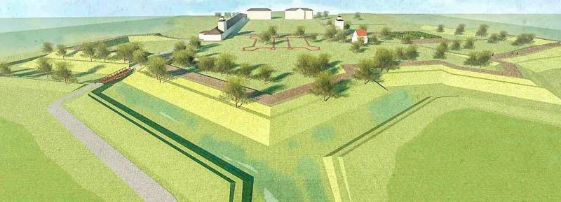 - rekonstrukcję fortyfikacji południowej oraz kładki pieszej,