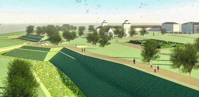 - zagospodarowanie terenu przyległego wraz z narysem pałacu, odtworzenie historycznego układu ścian zewnętrznych z basztami narożnymi,