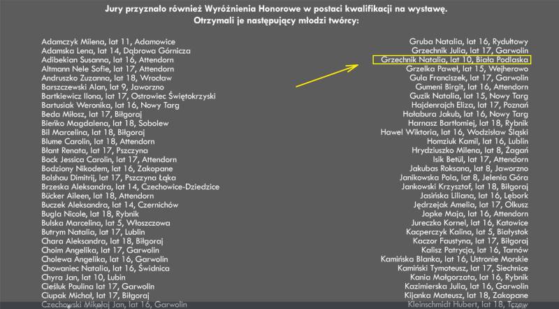 Z wielką radością i satysfakcją pragniemy poinformować o kolejnym sukcesie podopiecznej Lilli Wielgan-Michaluk z Pracowni „Piksel"z Bialskiego Centrum Kultury.