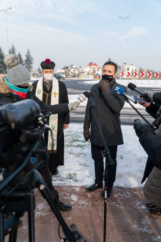Prezydent podziękował obecnym na otwarciu przedstawicielom Urzędu Miasta za przygotowanie projektu i czuwanie nad realizacją budowy rond: zastępcy prezydenta panu Maciejowi Buczyńskiemu, naczelnikowi Wydziału Rozwoju Miasta panu Michałowi Romanowskiemu, naczelnikowi Wydziału Dróg pani Renacie Tychmanowicz, naczelnikowi Wydziału Inwestycji pani Sylwii Golik i ich zespołom.