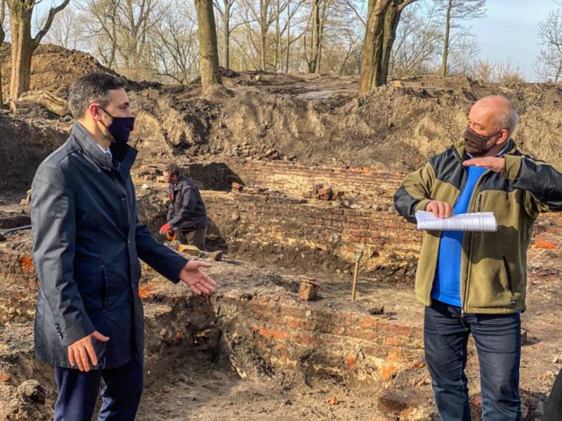 Od dwóch tygodni trwają prace badawcze (archeologiczne badania wykopaliskowe) prowadzone na terenie zespołu zamkowego w Białej Podlaskiej, w miejscu zajmowanym dawniej przez budynek kuchni przypałacowej. Wykopaliska prowadzone są z inicjatywy Prezydenta Miasta Biała Podlaska przez pracowników Muzeum Południowego Podlasia w Białej Podlaskiej przy współpracy z wykonawcą prac budowlanych. Kierownikiem prac wykopaliskowych jest archeolog Mieczysław Bienia. Wykop badawczy założony został w południowej części założenia zamkowego, na południowy – zachód od ukrytych pod ziemią reliktów pałacu.
