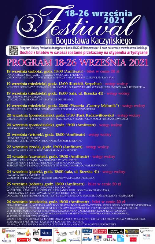 Prezydent Miasta Biała Podlaska Michał Litwiniuk zaprasza na 3. Festiwal im. Bogusława Kaczyńskiego, który zapowiada się imponująco.