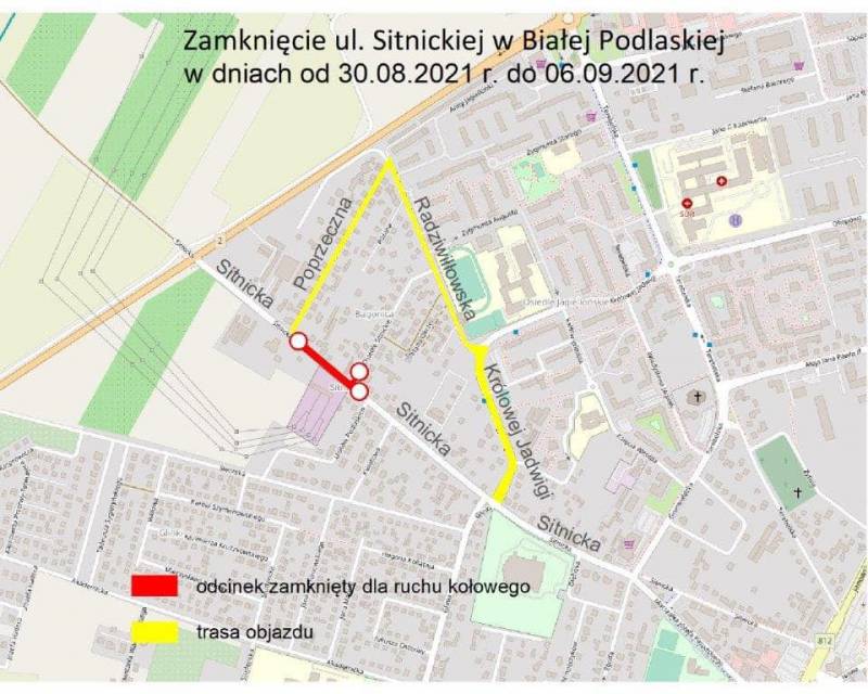 Objazd zostanie wyznaczony ulicami: Poprzeczną, Radziwiłłowską, Królowej Jadwigi.