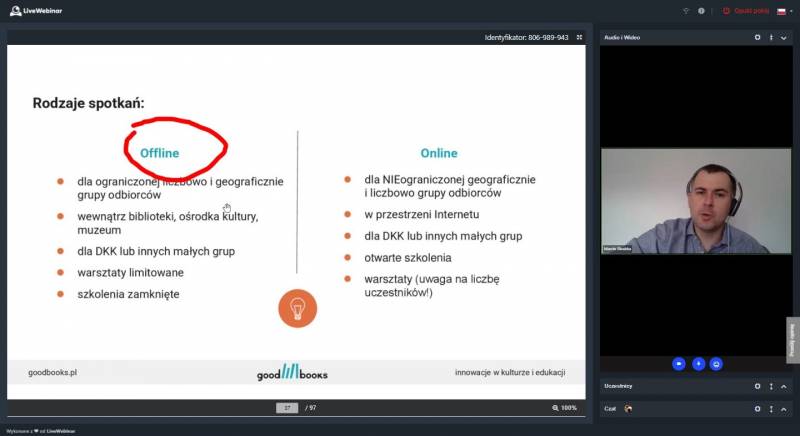 Podczas drugiego szkolenia pt. „Genial.ly dla bibliotekarzy – warsztat praktyczny z tworzenia prezentacji”, które odbyło się w dniach 14-15 czerwca 2021 r., bibliotekarze poznali tajniki interaktywnego narzędzia, które może być z powodzeniem wykorzystywane do promocji książki i działań bibliotecznych, sprawdzającego się zwłaszcza w dotarciu do młodych czytelników. Pod okiem Łukasza Brauna - specjalisty w dziedzinie marketingu cyfrowego oraz wdrażania nowych technologii i narzędzi komunikacji w instytucjach kultury uczestnicy szkolenia poznali możliwości tej platformy.