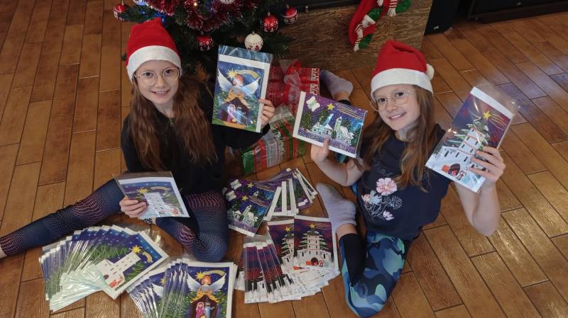 Podopieczne pracowni grafiki komputerowej przy BCK "Piksel" Lilianna Rudzka i Zuzanna Rudzka w ramach projektu stypendialnego otrzymanego od Prezydenta Miasta Biała Podlaska, wykonały kartki świąteczne, które z wielką radością przekazały Stowarzyszeniu Wspólny Świat licząc na to, że karteczki pomogą pozyskać w ramach organizowanych kiermaszy świątecznych środki na rozbudowę stowarzyszenia.
