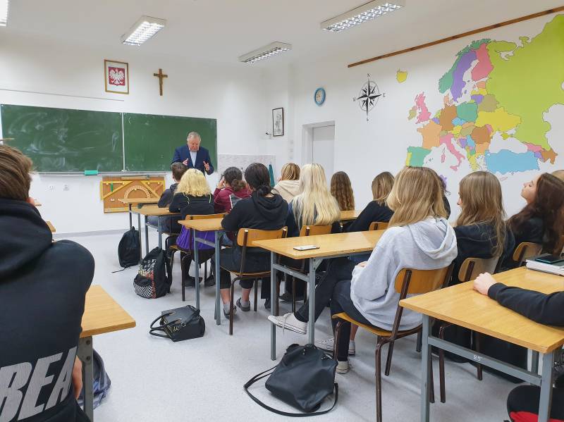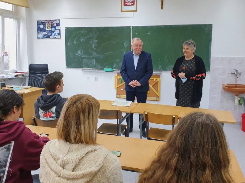 Dzisiaj, z okazji 40 rocznicy wprowadzanie stanu wojennego w Polsce, gościliśmy w IV LO im. Stanisława Staszica w Białej Podlaskiej pana Andrzeja Czapskiego - opozycjonistę, działacza Solidarności w okresie PRL, senatora I oraz II kadencji Senatu RP, wicemarszałka Senatu II kadencji, byłego wojewodę bialskopodlaskiego, prezydenta miasta Biała Podlaska w latach 1998 – 2014.