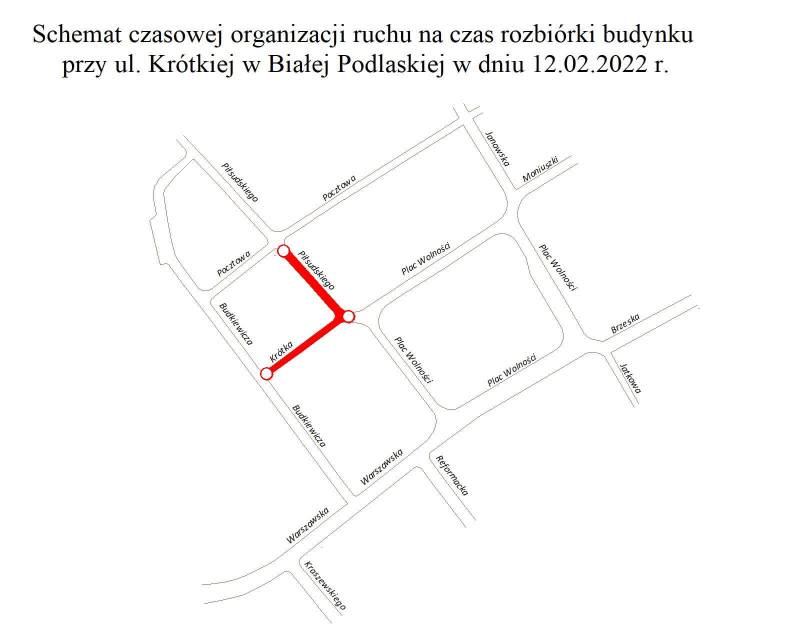- na chodniku przy ul. Piłsudskiego od strony ul. Krótkiej będzie obowiązywał zakaz ruchu pieszych,
