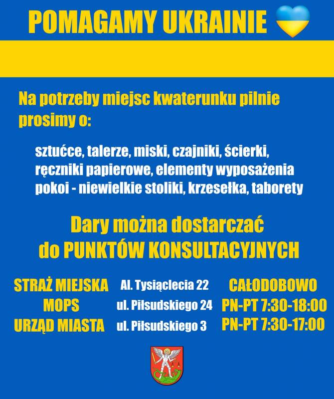 Prosimy o pomoc w wyposażeniu miejskiego kwaterunku uchodźców z Ukrainy. Na chwilę obecną to łącznie 120 miejsc w: