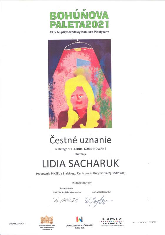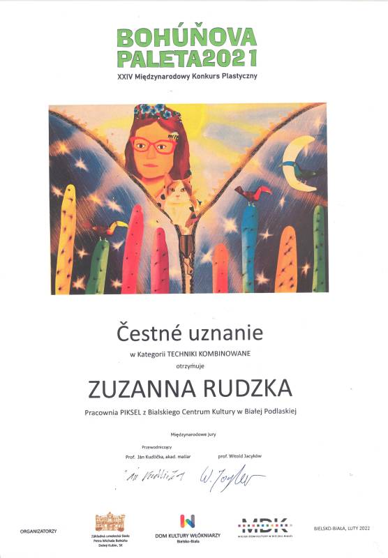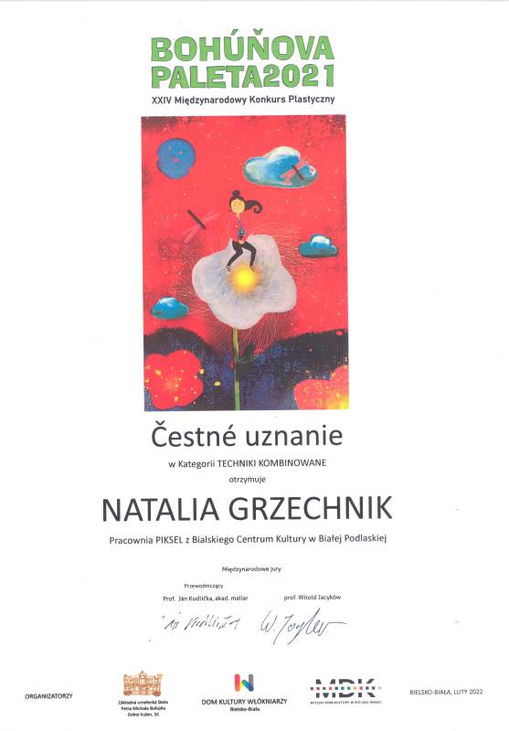 Ponad dwa tysiące prac z całego świata wpłynęło na Międzynarodowy Konkurs Plastyczny Bohúňova Paleta, który już po raz kolejny zorganizował Dom Kultury Włókniarzy w Bielsku-Białej wraz ze Szkołą Artystyczną w Dolnym Kubinie na Słowacji. Z ogromna radością informujemy że aż 5 wychowanek Pracowni Grafiki Komputerowej „Piksel", prowadzonej przez panią Lillę Wielgan-Michaluk zostało laureatkami.