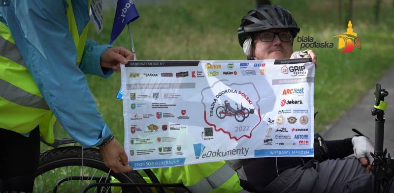 Łukasz jest osobą z niepełnosprawnością i bardzo chciał objechać Polskę na swojej trajce. Miasto Biała Podlaska było jednym z miejsc, w których jego grupa się zatrzymała, a my – wraz ze wspaniałymi bialskimi rowerzystami, m. in. z TKKF Krzna Biała Podlaska oraz Janem Konstantym Staniszewskim – z radością ich powitaliśmy w Rowerowej Stolicy Polski. Dostępność przestrzeni miasta dzięki rozbudowywanej sieci ciągów pieszo-rowerowych zrobiła na naszych gościach wrażenie.