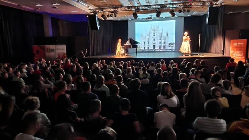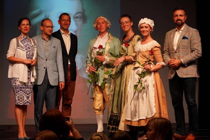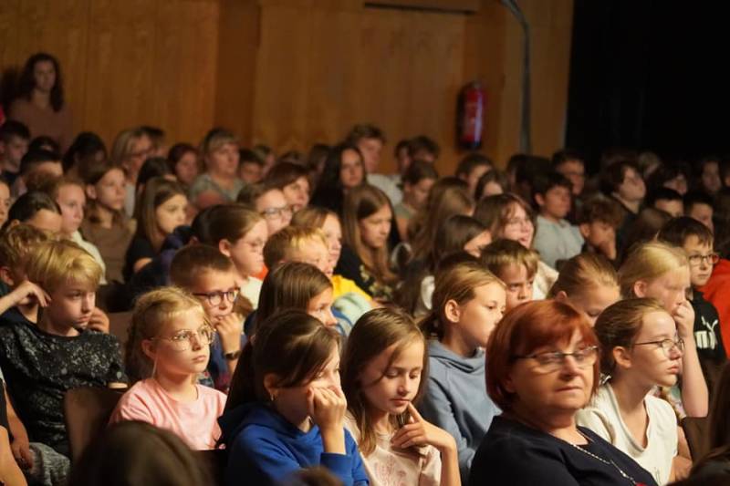 Dzisiejsze "Opowiastki o Mozarcie" zgromadziły dziecięcą publiczność - uczniowie naszych szkół byli zachwyceni koncertem krakowskich artystów: sopranistki Joanny Trafas (autorki scenariusza i wspaniałej narratorki widowiska), basa-barytonu Stanisława Dudy oraz pianistki Emilii Bernackiej-Głowali. To nie tylko wyjątkowi muzycy, ale i prawdziwi znawcy dziecięcej natury - po takiej lekcji o Mozarcie każdy słuchacz staje się bogatszy o niezwykle ciekawie przekazaną wiedzę o muzyce. Usłyszeliśmy znane arie i duety z oper W.A. Mozarta, ale także „przebojowe" utwory instrumentalne w układzie na fortepian.
