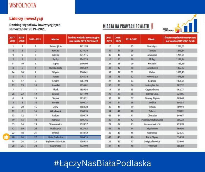 W tej kadencji pniemy się w górę m.in. dzięki skutecznemu pozyskiwaniu środków zewnętrznych (UE + programy rządowe). Nasze inwestycje w ciągu niecałych 4 lat mają wartość 220 milionów zł. To 3-krotnie więcej niż w poprzedniej kadencji naszego samorządu. Historycznym sukcesem jest to, że w tym okresie bezprecedensowego wzrostu nakładów inwestycyjnych zmniejszyliśmy zadłużenie miasta o 30 milionów złotych.