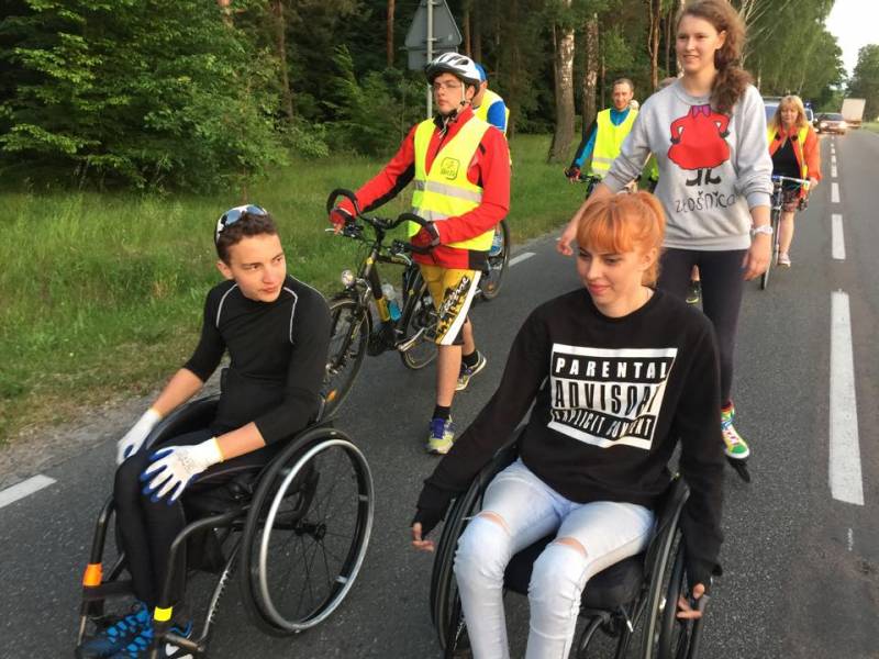 Od Wisznic chłopakowi towarzyszyła Ewa Woźniak, bialczanka także poruszająca się na wózku inwalidzkim.