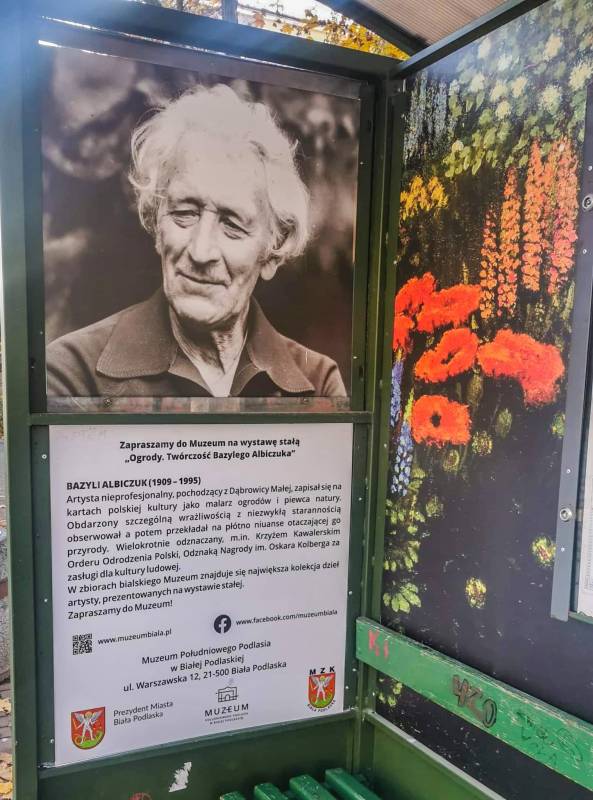 „Promujemy sztukę regionu w przestrzeni publicznej Białej Podlaskiej. Wiaty z motywami twórczości Bazylego Albiczuka powstały jako pierwsze w ramach projektu „Droga do muzeum”. W ten sposób nie tylko dbamy o estetykę naszego otoczenia, ale wychodzimy „w miasto” z zaproszeniem do obejrzenia fantastycznych wystaw w zupełnie nowych, nowoczesnych przestrzeniach muzeum, które mamy dzięki finansowemu wsparciu funduszy UE” – mówi Michał Litwiniuk. Jedna z sal ekspozycyjnych Muzeum Południowego Podlasia w zupełnie nowej odsłonie poświęcona jest twórczości tego mistrza ogrodów i piewcy natury. To 50 obrazów olejnych, rysunków i akwarel.