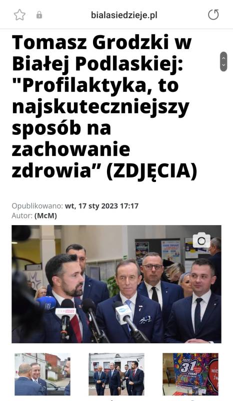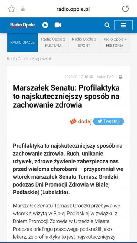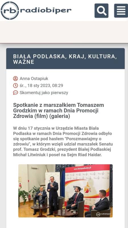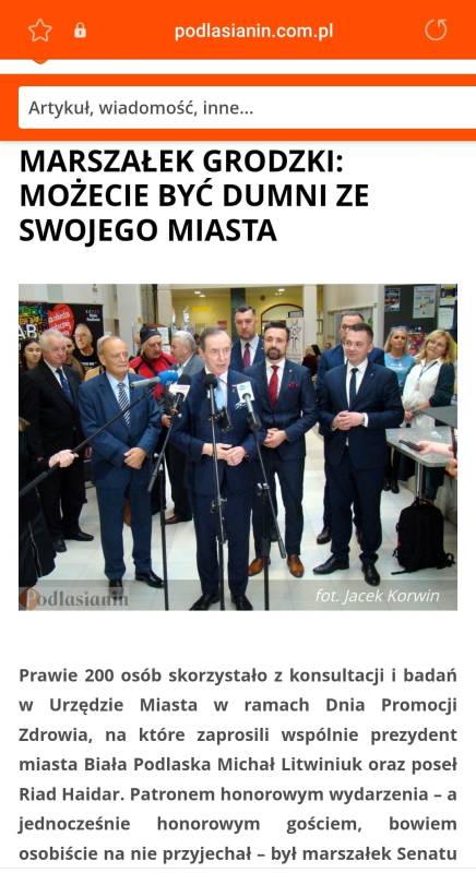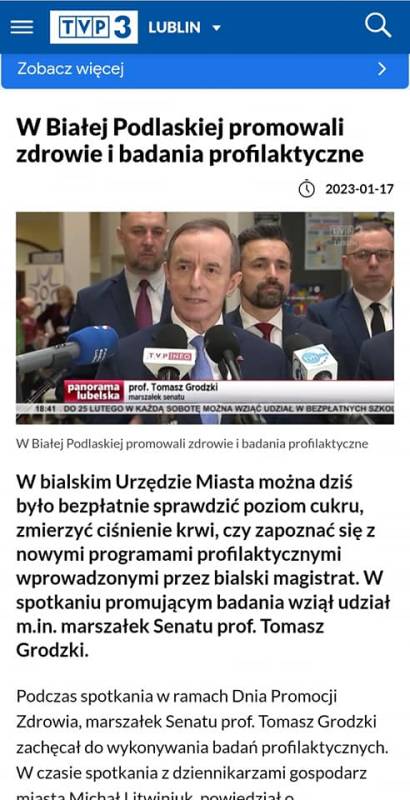 Wizyta marszałka Senatu Rzeczypospolitej Polskiej prof. Tomasza Grodzkiego w ramach Dnia Promocji Zdrowia w naszym mieście, wzbudziła zainteresowanie ogólnopolskich i regionalnych telewizji i gazet oraz największych portali internetowych.