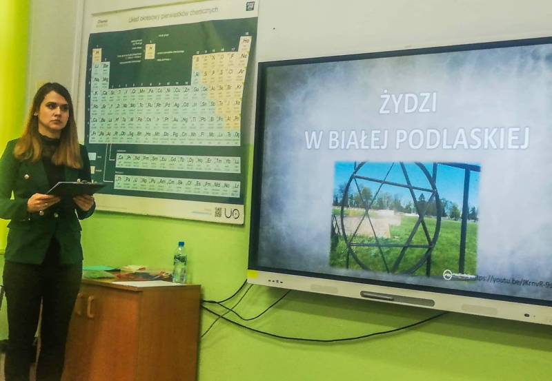Na zajęciach pań: Anny Bratczuk i Agnieszki Arseniuk uczniowie poznali historię i tradycje narodu żydowskiego – przed wojną, w II RP, społeczność ta stanowiła od 66% (w 1921 r.) do 36% (w przededniu II wojny światowej) mieszkańców Białej Podlaskiej.
