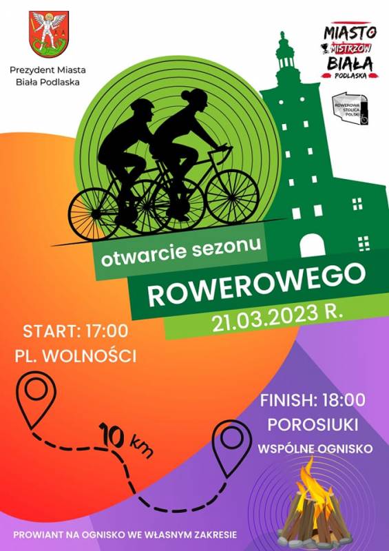 21 marca br. rozpoczynamy trening przygotowujący do rywalizacji o Puchar Rowerowej Stolicy Polski 2023. Jak na mistrzów przystało wybierzemy się na przejażdżkę, którą zakończymy przy ognisku w Porosiukach.