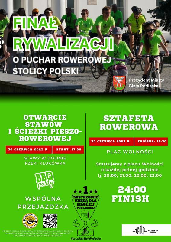 Dodatkowo tego samego dnia z placu Wolności o każdej pełnej godzinie tj. 20:00, 21:00, 22:00, 23:00 wyruszy Sztafeta Rowerowa. Zakończenie wydarzenia zaplanowane jest na godzinę 24:00 wspólną fetą kończącą zmagania w ogólnopolskiej rywalizacji o Puchar Rowerowej Stolicy Polski.