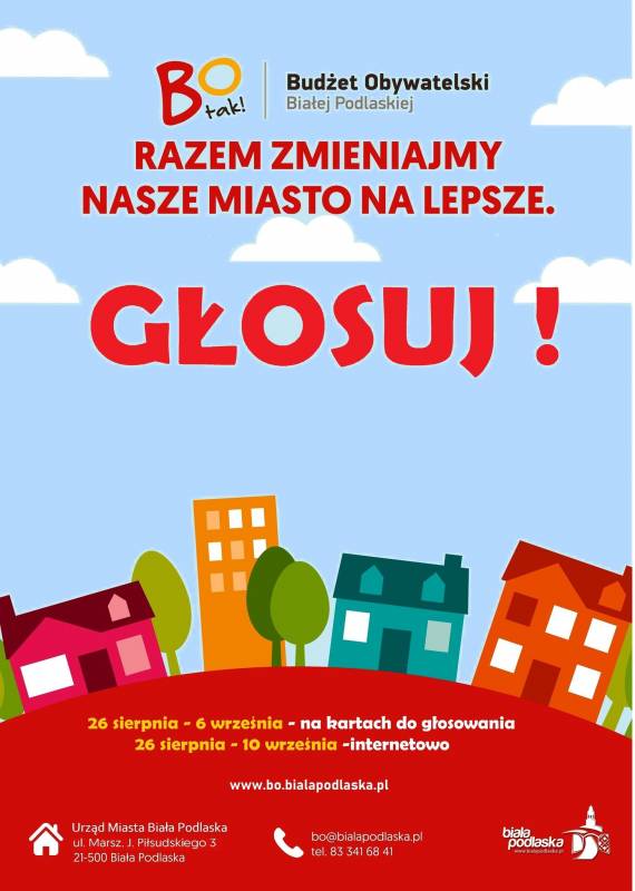 Głosowanie za pośrednictwem strony internetowej: www.bo.bialapodlaska.pl potrwa od 26 sierpnia do 10 września 2023 r.