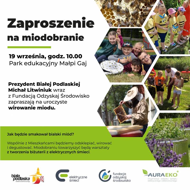 19 września o godz. 10.00 Prezydent Białej Podlaskiej Michał Litwiniuk wraz z przestawicielami Fundacji Odzyskaj Środowisko, organziacji AURAEKO oraz mieszkańcami wspólnie sprawdzą smak miodu z pasieki z recyklingu. Miodobranie rozpocznie ekologiczny piknik z wieloma atrakcjami.