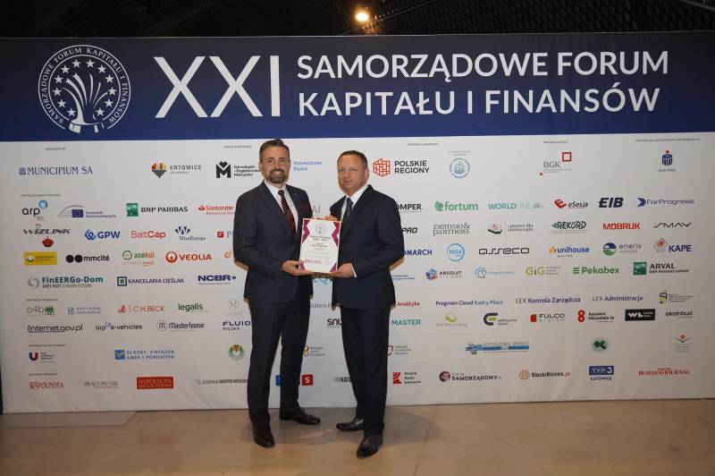 Nagrody w imieniu mieszkańców miasta odebrał prezydent Michał Litwiniuk podczas XXI Samorządowego Forum Kapitału i Finansów w Katowicach. Towarzyszyli mu niezawodni współpracownicy z Urzędu Miasta: Pani Marta Mirończuk - Skarbnik Miasta, Pani Renata Tychmanowicz - Naczelnik Wydziału Dróg oraz Pan Jacek Melaniuk - Naczelnik Wydziału Inwestycji.
