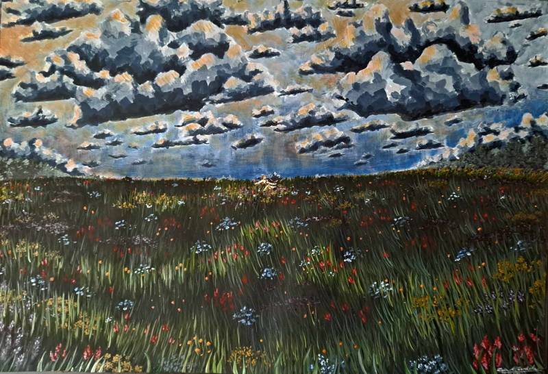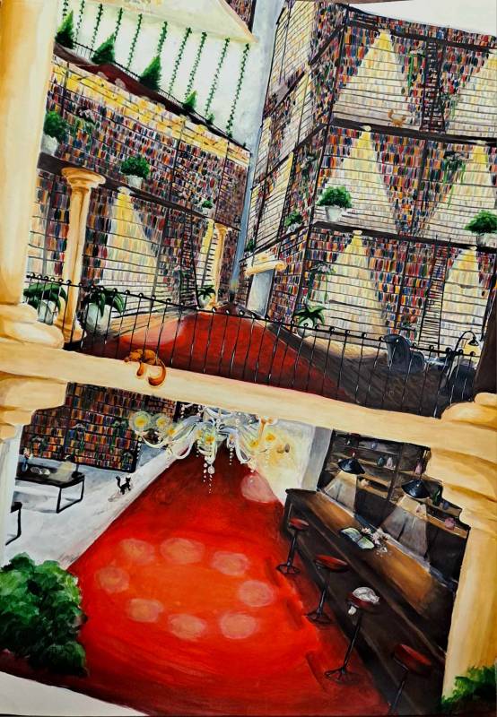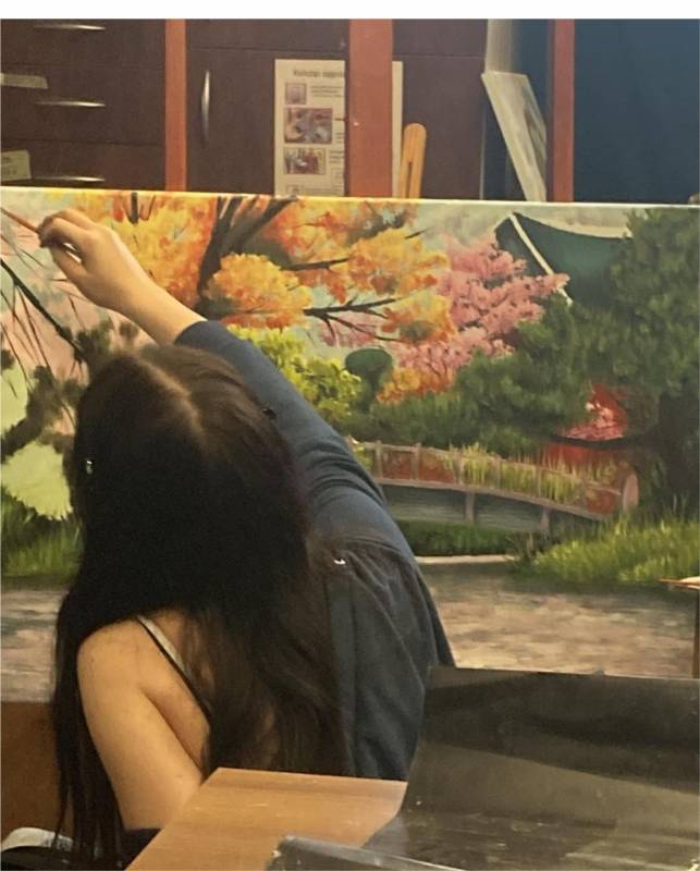 Nagrodzoną pracę malarską pt. "Effugium" Zofia namalowała farbami akrylowymi na brystolu.