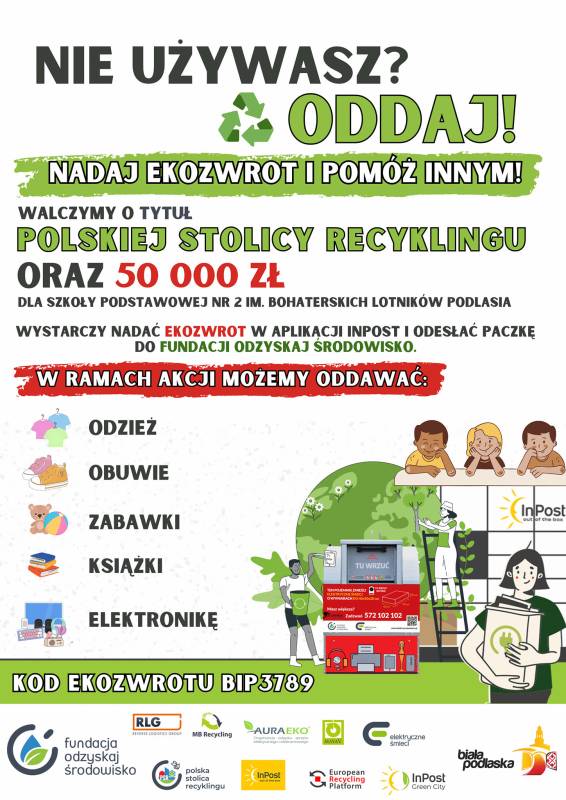 EKOZWROT to Ogólnopolska akcja realizowana przez Fundację Odzyskaj Środowisko oraz InPost. Jej celem jest nadanie zbędnym, ale sprawnym przedmiotom drugie życie.
