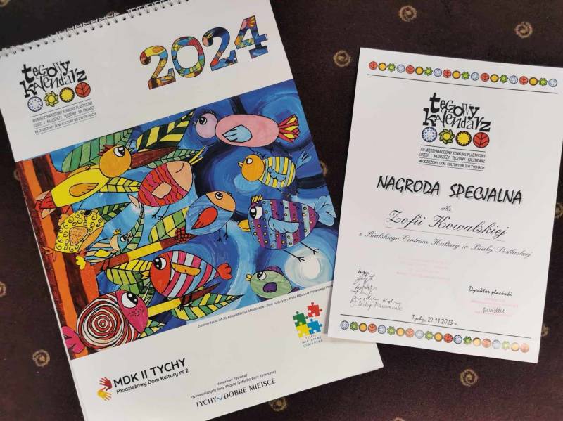 Zofia Kowalska reprezentująca Koło Plastyczne Kreska Bialskiego Centrum Kultury została laureatką tego konkursu i jej praca znalazła się na wystawie i w kalendarzu na rok 2024.