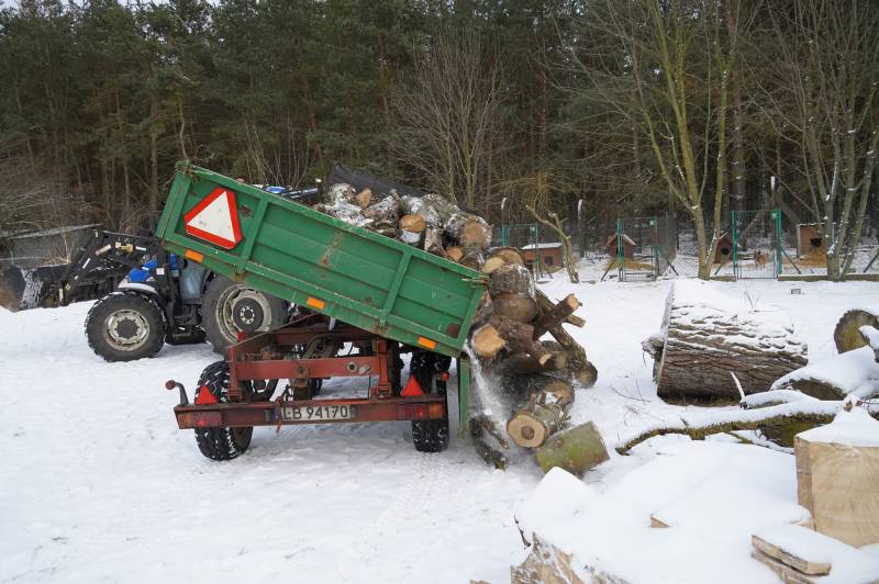 Dziś pani naczelnik Wydziału Gospodarki Komunalnej i Ochrony Środowiska Aneta Juszczuk przekazała razem z panem Konradem Afaltowskim, prezesem spółki "Zieleń" kolejny ładunek drewna, dzięki któremu zwierzakom jest cieplej.