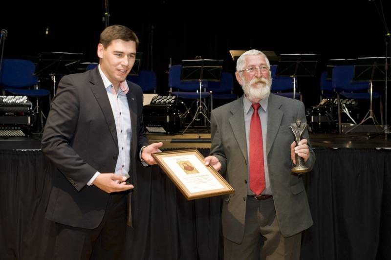 młodzieży. Laureat otrzymał z rąk prezydenta statuetkę autorstwa plastyka