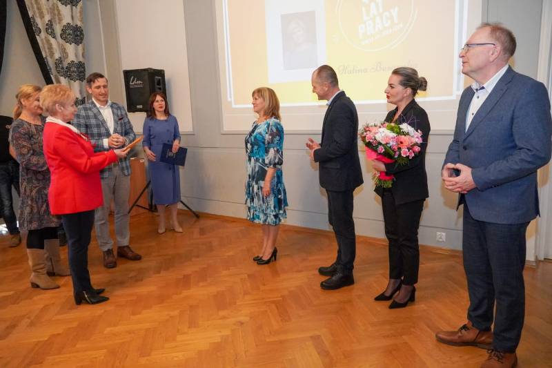 Zespół Bialskiego Centrum Kultury i Klubu Kultury Eureka, a w imieniu Urzędu Miasta zastępca prezydenta Maciej Buczyński, pani rzecznik Gabriela Kuc-Stefaniuk, naczelnik Wydziału Edukacji, Kultury i Sportu dr Stanisław Romanowski i kierująca Referatem Kultury i Sportu pani Beata Demianiuk podziękowali pani Halince za jej pełną pasji i zaangażowania pracę i wkład w rozwój kultury naszego miasta. Pani Halinka jest uwielbiana przede wszystkim przez dzieci, w których przez wiele lat zaszczepiła miłość do poezji i teatru.