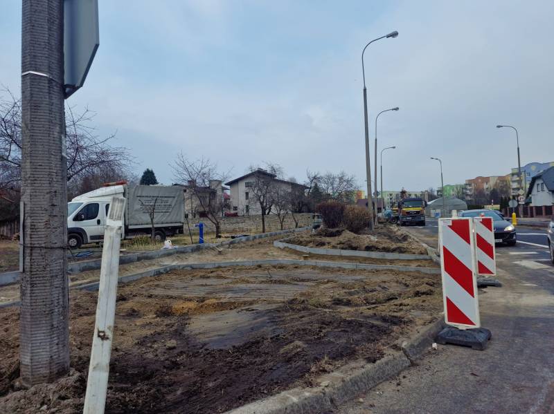 Trwają prace przy ul. Królowej Jadwigi na odcinku od ul. Sitnickiej do ul. Zygmunta Augusta polegające na przebudowie chodnika i przejść dla pieszych.