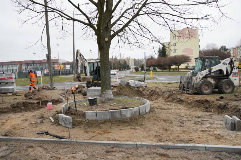 Trwają prace przy ul. Królowej Jadwigi polegające na przebudowie chodnika i przejść dla pieszych.