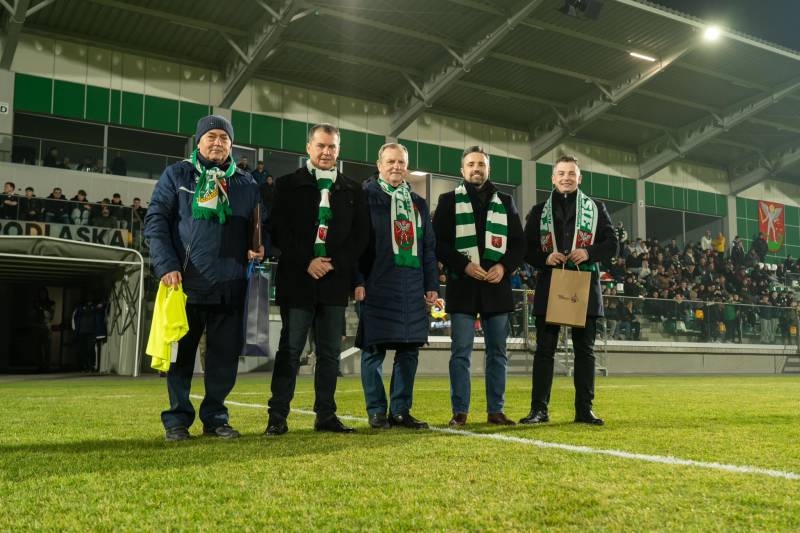 Podczas meczu prezydent Michał Litwiniuk i naczelnik Gabinetu Prezydenta Wojciech Sosnowski wręczyli wraz z prezesem klubu MKS Podlasie Tomaszem Buraczewskim podziękowania Stanisławowi Lesiukowi za wkład w rozwój piłki nożnej.