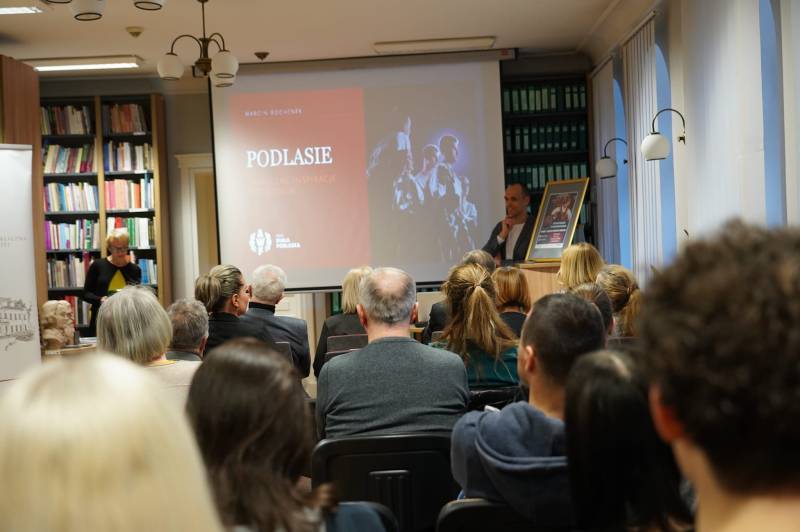 Dziś w Dziale Wiedzy o Regionie Miejskiej Biblioteki Publicznej odbyło się spotkanie z dr. Marcinem Bochenkiem, nauczycielem akademickim, kierownikiem Zakładu Tańca AWF Biała Podlaska. Pan Marcin zabrał uczestników w podróż przez tańce wirowe, tańce popisowe, a także tańce korowodowe, takie jak Hreczka i Żuraw. Opowiedział również o bogactwie i różnorodności tańca ludowego na Podlasiu.
