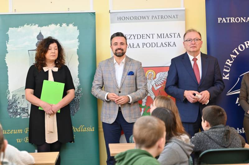 Młodych miłośników regionu, życząc powodzenia, powitali: prezydent miasta Michał Litwiniuk, Naczelnik Wydziału Edukacji, Kultury i Sportu - dr Stanisław Romanowski oraz Beata Demianiuk - kierownik Referatu Kultury i Sportu.