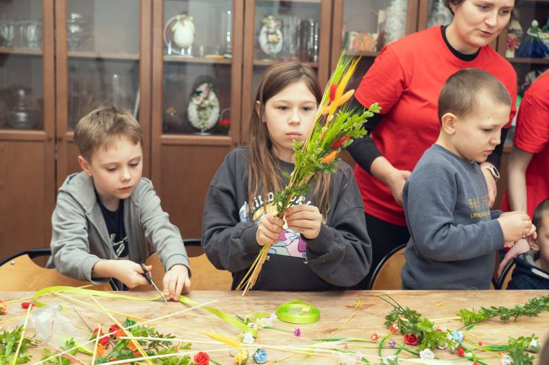 Jutro Niedziela Palmowa - zgodnie ze zwyczajem w siedzibie Caritas Biała Podlaska wśród zabaw przypominających tradycje wielkanocne było także przygotowanie palm.