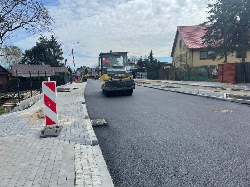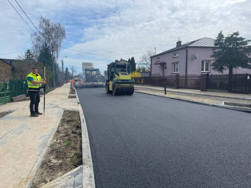 Właśnie wykonywana jest warstwa wiążąca z mieszanki mineralno asfaltowej.