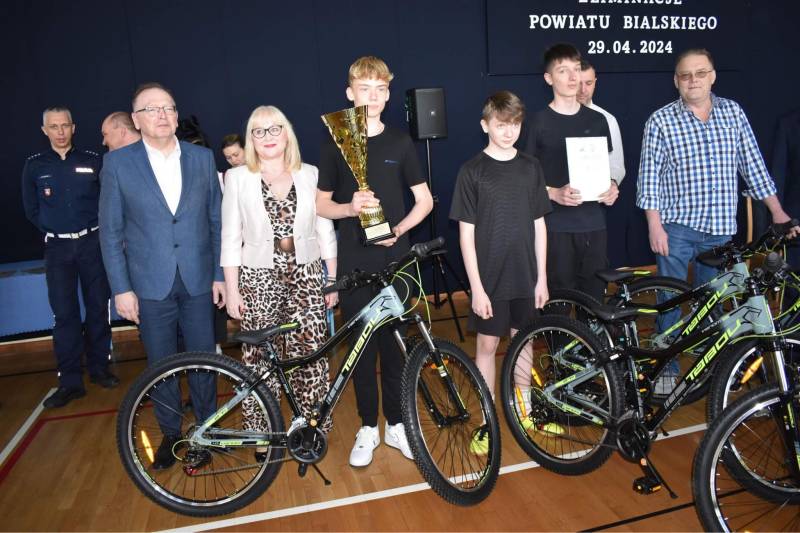 Prezydent Michał Litwiniuk był fundatorem fantastycznych nagród dla uczestników: rowerów hulajnóg i oczywiście pucharów dla zwycięzców.