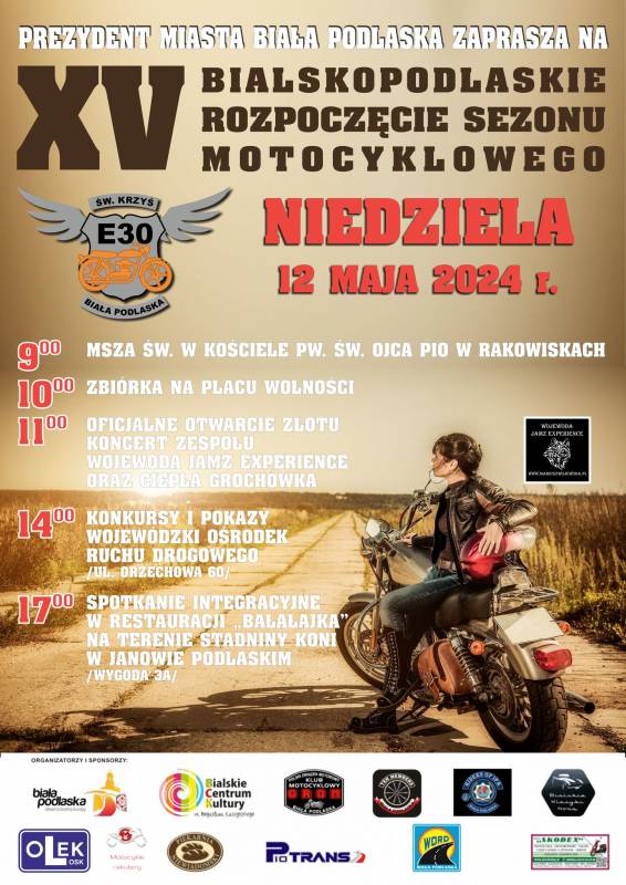 Wspólnie z prezydentem miasta Michałem Litwiniukiem zapraszamy na XV Bialskopodlaskie Rozpoczęcie Sezonu Motocyklowego.