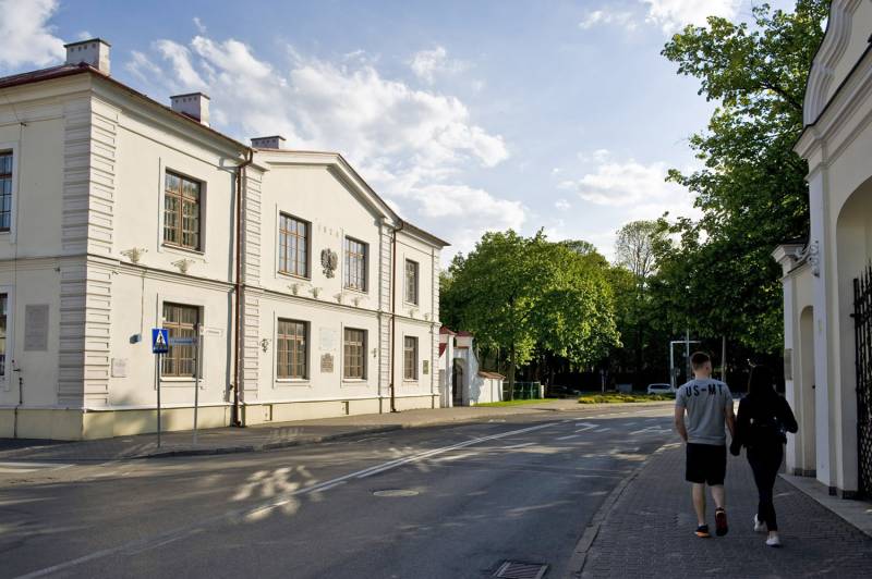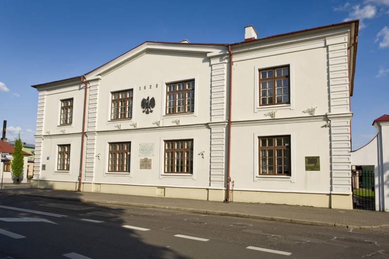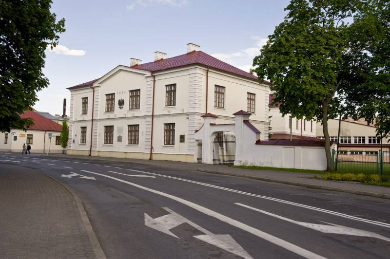 Budynek wzniesiony w 1585 r. jako szpital miejski przez Mikołaja Krzysztofa Radziwiłła. W 1628 r. adaptowany na potrzeby Akademii Bialskiej, kolonii akademickiej Uniwersytetu Jagiellońskiego. Rozbudowany przed 1650 r., w 1840 r. oraz ok. 1870 r. Pod opieką Akademii Krakowskiej do 1777 r., w latach 1777-95 pod zarządem Akademii Wileńskiej, następnie gimnazjum, od 1864 r. rosyjskie a od 1916 r. polskie im. Józefa Ignacego Kraszewskiego ucznia tejże szkoły.