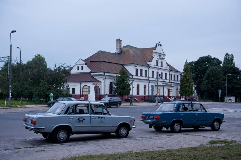 The Railway station was erected in 1857 according to the designs of Alfons Ferdynand Kropiwnicki. It was extended in 1928 according to the project of Władysław Kwapiszewski. The commemorative plaque celebrates the visit of Jozef Pilsudski in 1920 and funded by citizens of the city. The water tower was built in 1928.